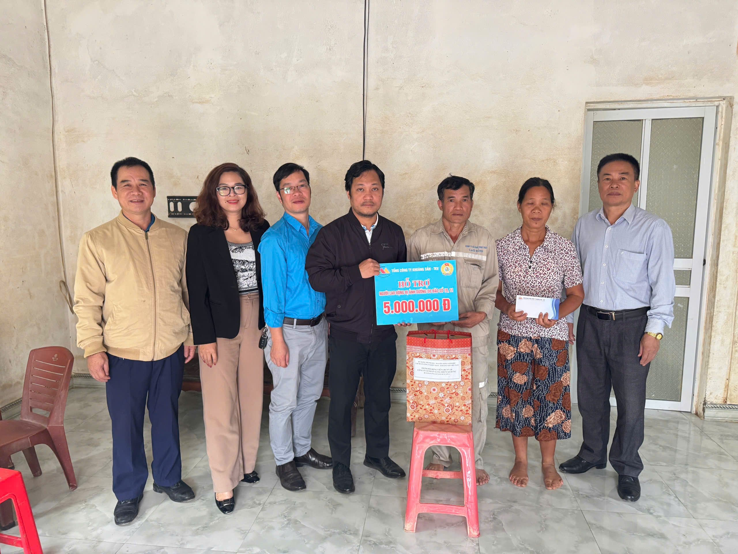 Sau đấy Công ty đã tổ chức đến thăm hỏi động viên trao chi phí hỗ trợ đến các hộ gia đình CNLĐ Công ty và mỗi người một phần quà của Đ/c Đặng Thanh Hải – Nguyên Tổng Giám đốc Tập đoàn Công nghiệp Than – Khoáng sản Việt Nam.