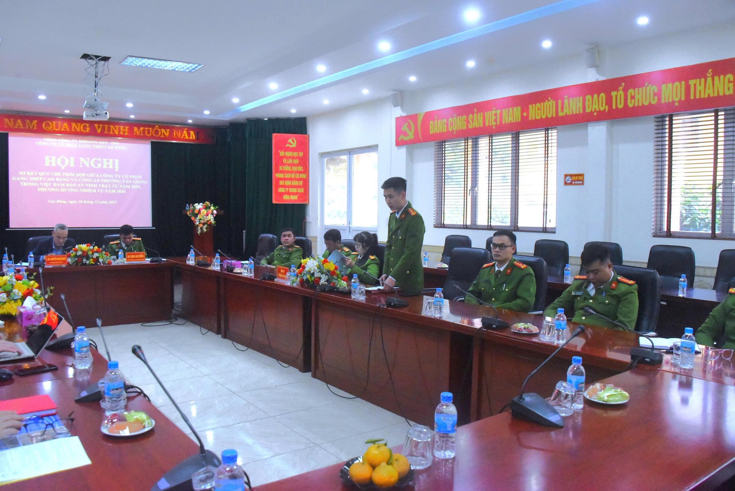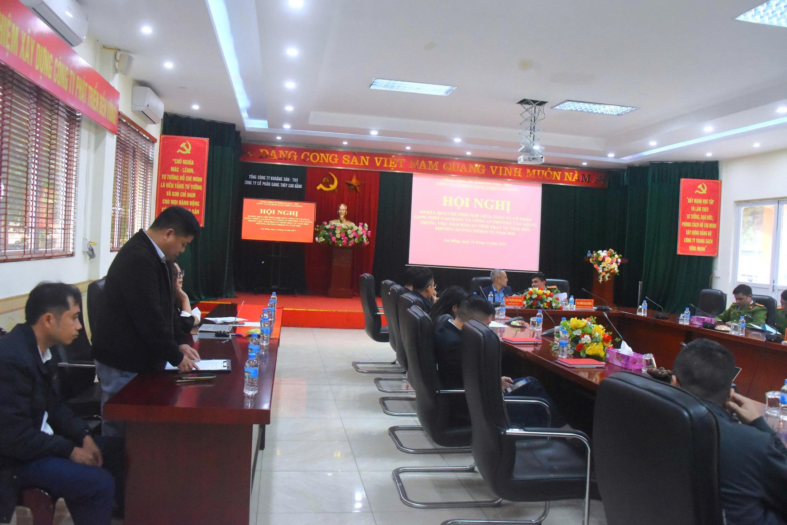 Tham dự Hội nghị có đồng chí Nông Cao Cường – Phó trưởng Công an phường Tân Giang đại diện lãnh đạo Công an phường Tân Giang, đồng chí Nguyễn Hoài Nam – Phó giám đốc Công ty, đại diện lãnh đạo Công ty CP Gang thép Cao Bằng cùng các cán bộ, chiến sĩ công an và lực lượng bảo vệ.